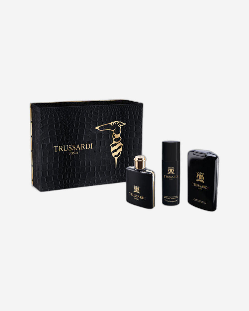 مجموعة هدايا تروساردي أومو - 100 مل أو دو تواليت + 100 مل جل استحمام + 100 مل مزيل عرق