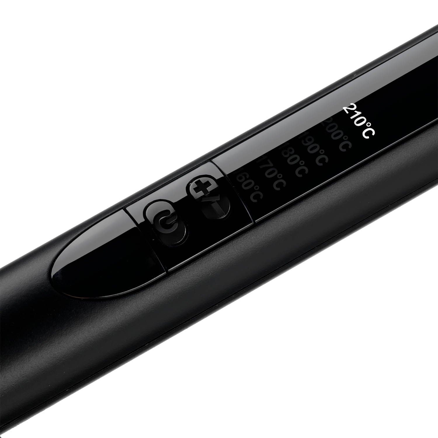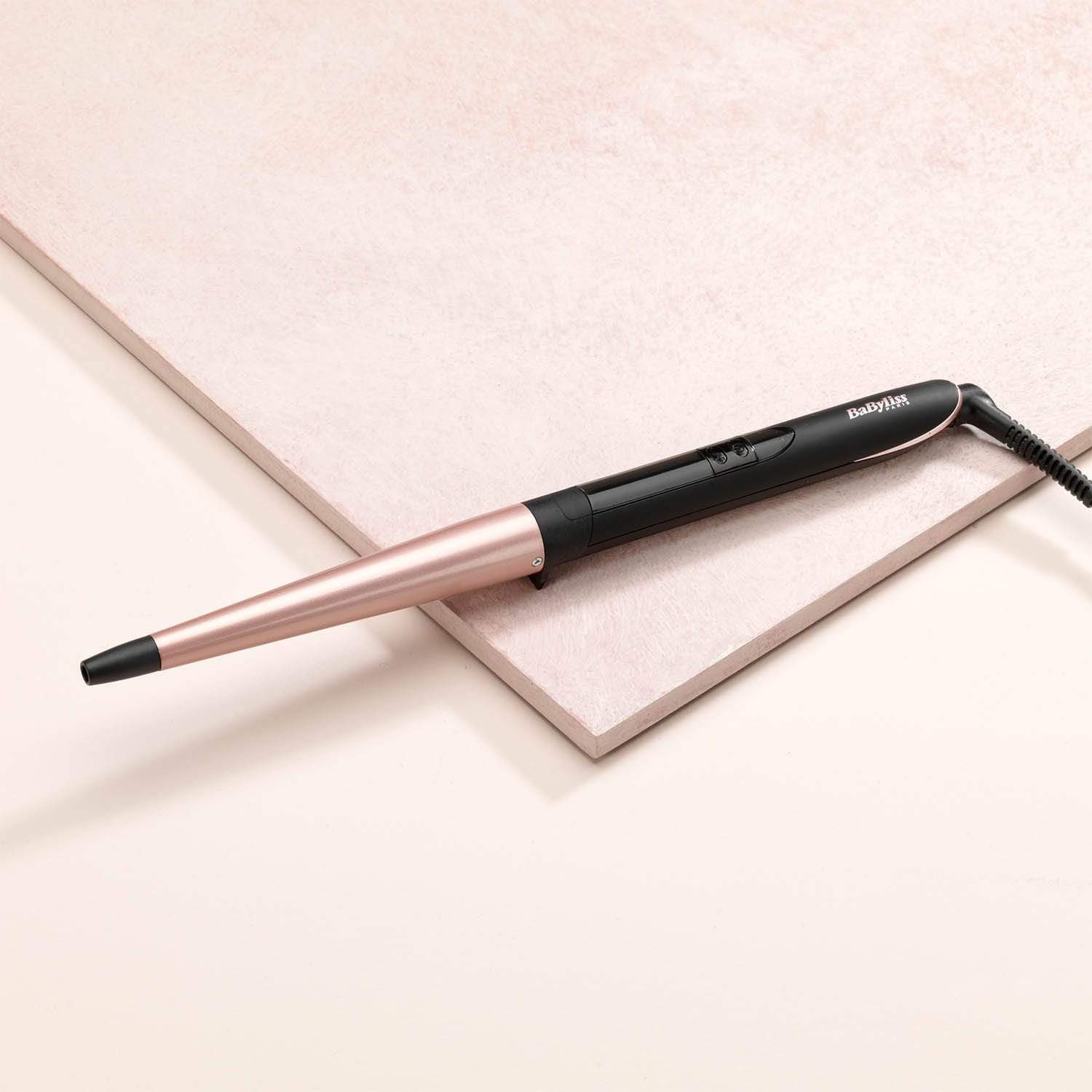 عصا أسطوانية مخروطية الشكل مع لمسة نهائية ناعمة من الكوارتز والسيراميك تعمل بكل سهولة على إنشاء تجعيدات لامعة جميلة تتدفق بحرية.