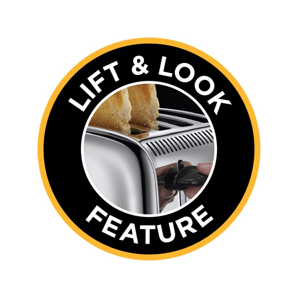 محمصة خبز راسل هوبز الكلاسيكية المصنوعة من الفولاذ المقاوم للصدأ، 4 شرائح، مع رفع عالي وفتحات واسعة - 23340